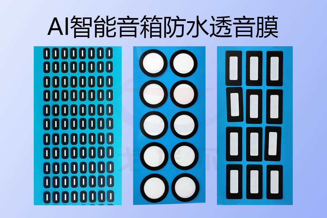 對于喇叭、麥克等電聲器件的防水,一般是通過AI智能音箱防水通音膜來實現的,是將AI智能音箱防水透音膜固定連接在音響防水罩殼體上,也有直接貼裝在喇叭、麥克上面來實現防水的,AI智能音箱防水通音膜為根據所采用的喇叭、揚聲器的形狀樣式有圓形、跑道形、方形等三種結構,AI智能音箱喇叭防水通音膜與AI智能音箱麥克防水通音膜是由eptfe高分子防水材料所構成。可以很好的將水阻止到喇叭、麥克防水透音膜外,起到對喇叭、麥克防水保護的作用,在防水同時,聲音的音質也不會受到影響。