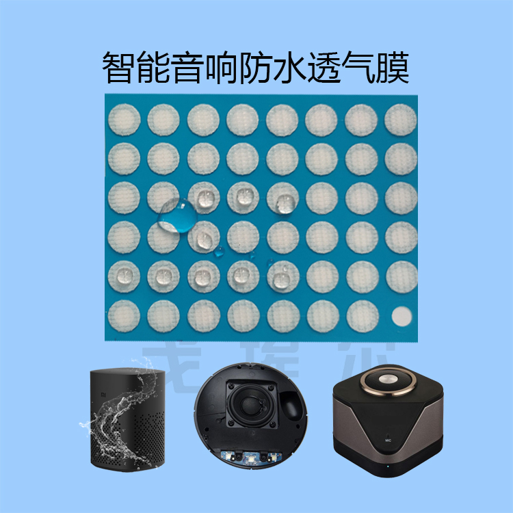 所以戈埃爾防水透聲膜一般均固定連接在AI智能音箱防水罩正面中部的上下兩側,防水透聲膜為圓形、跑道形、方形等三種結構,它由eptfe高分子防水材料所構成。可以實現既防塵防水,又透空氣透聲音,同時還能防潮防腐蝕、降溫散熱、泄壓排氣、氣壓平衡等。